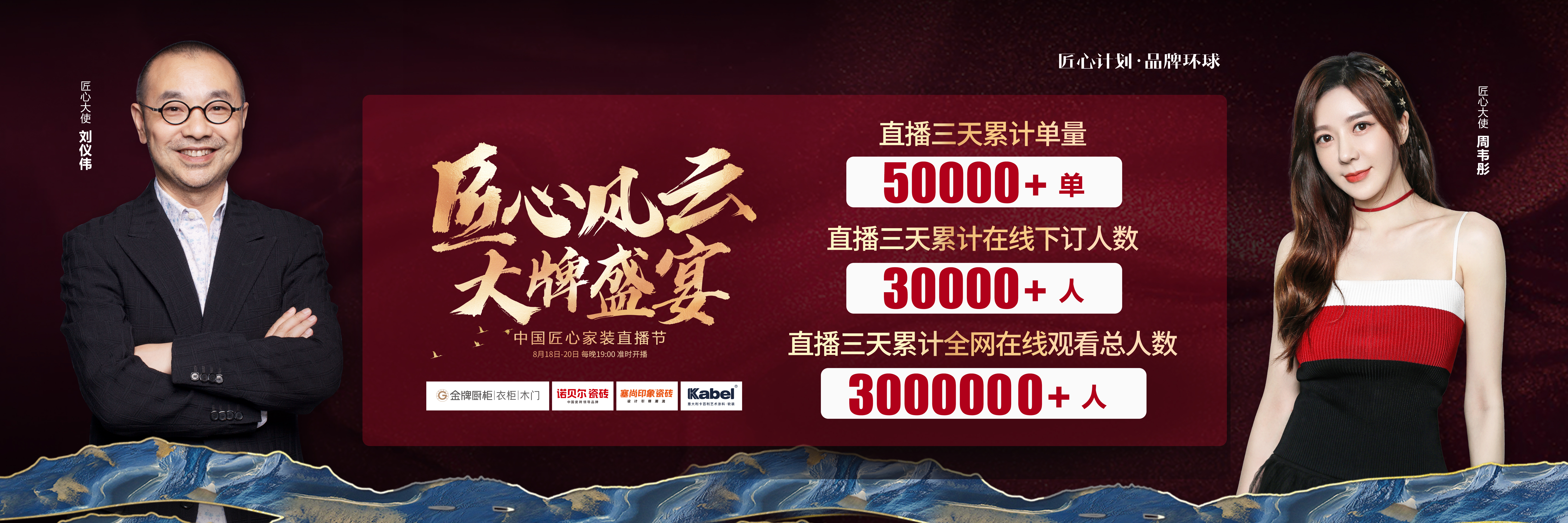 由AG电子厨柜、诺贝尔瓷砖、塞尚印象瓷砖、卡百利艺术涂料联合缔造,创赢科技系统支持全案营销执行的“匠心风云 大牌盛宴”中国匠心家装直播节于8月20日圆满落...